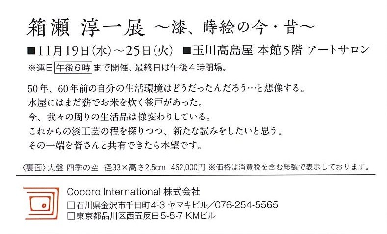 箱瀬淳一漆展~蒔絵の四季~